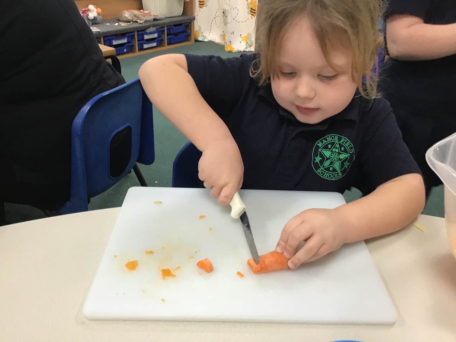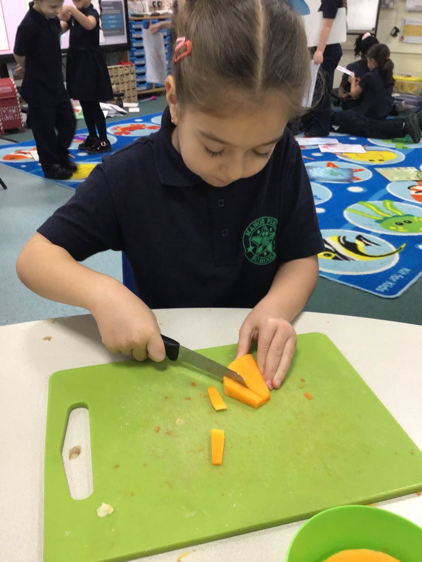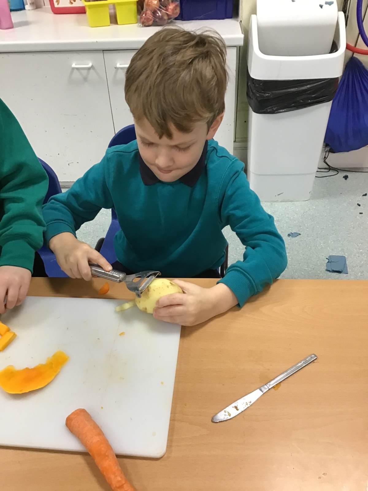 The children discover a tuff tray with a range of different Autumnal objects, the book Pumpkin Soup by Helen Cooper and a range of autumnal items and ingredients. On reading the story the children discover that the animals needed to work as a team to make the soup. Could we try to make soup for an Autumn celebration? What do we need to learn and do?